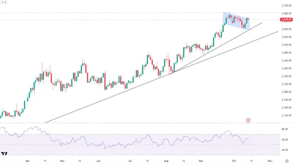 金价上周四在2600美元附近形成的看涨吞噬形态在周五得到了延续,使得黄金继续处于震荡上行阶段。