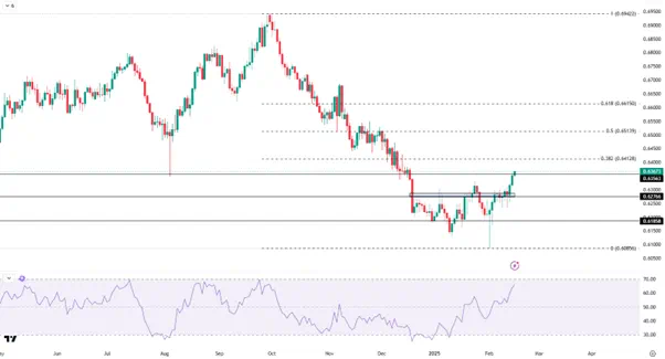 降息的决定可能短暂打压反弹初期的澳元,下方继续关注0.6280一线。若降息预期落空或鹰派降息,澳元有望延续上行,首要目标为0.6410即9-2月跌幅的38.2%回撤位。