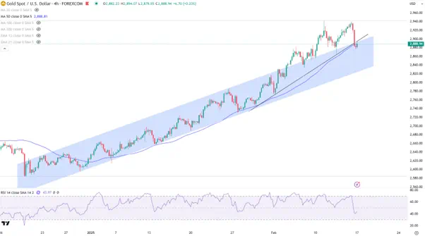 金价周一开盘在2875一线暂时获得支撑,若跌破2865后可能继续考验2830/40的关键支撑区域,也是通道的下轨,届时可能迎来买盘支撑。一旦跌破,黄金的疯狂涨势或告一段落。